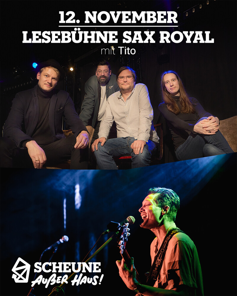 Einen Tag vorher mag die Karnevalssaison begonnen haben, aber am 12. November präsentiert die Dresdner Lesebühne Sax Royal in der Groove Station einmal mehr ein neues Programm, das vom Humor des Tätätätätätä und Schenkelklopfens möglichst weit entfernt ist. Das Stammteam aus Michael Bittner, Roman Israel, Max Rademann und Gesine Schäfer liest stattdessen Geschichten, Gedichte und Dramolette, die das Publikum durch Sprachwitz, Feinsinn und Selbstironie zum Lachen bringen. Wie immer bei der Lesebühne darf der Spaß sich austoben, ohne dass dem Ernst die Tür verschlossen bliebe. Zwischen den Texten ist überdies Platz für mitreißende Musik. Sie kommt in diesem Monat erstmals von Gastmusiker Tito.
