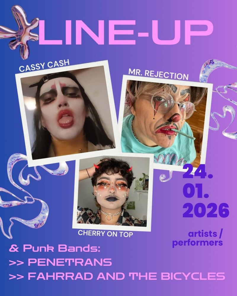 Mit Flora (sie/ihr) an Gitarre/ Main Vocals, Tetz (sie/ihr) an Bass/ Gebrüll und Guenni (any pronouns) am Schlagzeug/ Gebrüll bringt das Trio tanzbare Musik im klassischem Punk Sound mit gesellschaftskritischen Texten und einer guten Portion Bullenhass unverblümt in Eure Location.