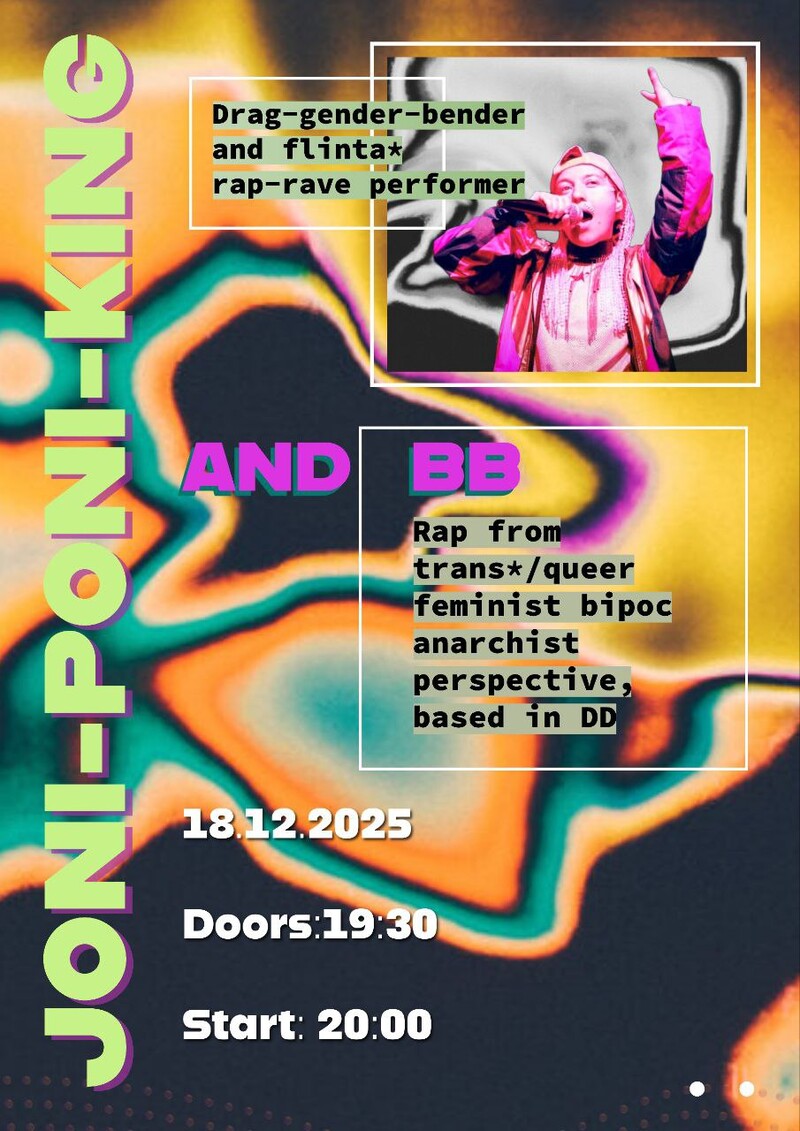 Am Ende ist der Raum das, wir gemeinsam daraus machen. Wir möchten, dass ihr, die ihr kommt, den Raum mit gestaltet – mit Leben und Ideen füllt. Das gilt für den Abend aber auch für den Treff an sich. Jede*r ist willkommen, den Treff zu betreuen und auszugestalten.