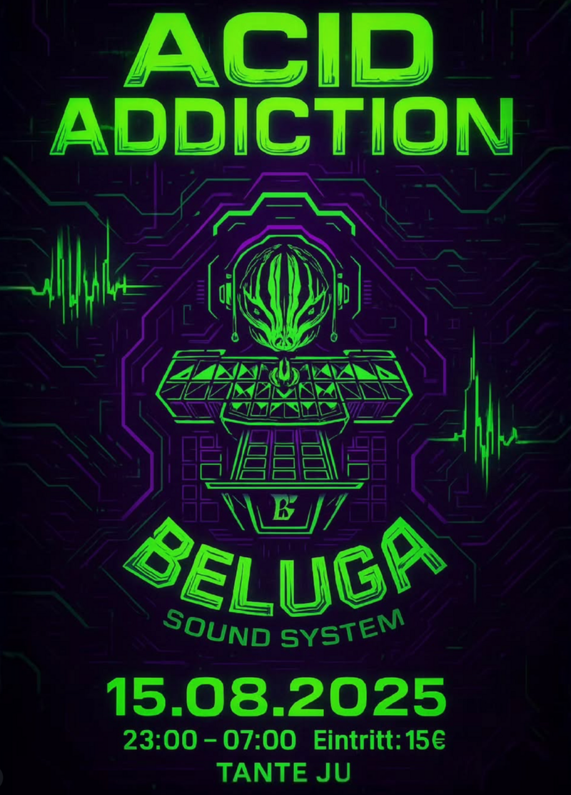 Wer’s noch nicht mitbekommen hat: Das Beluga Soundsystem ist zurück! Nach unserer ersten Party im Club Paula letztes Wochenende geht’s direkt weiter - am Stadtfest-Freitag fahren wir zusammen mit SFX System fett in der Tante Ju auf. Hartes Line-up mit Besuch aus Frankreich und München! Live-Tekno, Frenchcore, Tekno, Acid und noch einiges mehr wird's auf die Ohren geben.