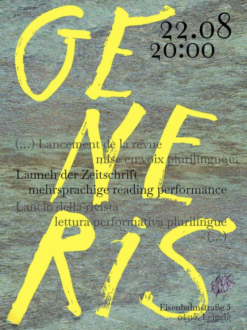 Am 24.08.25 launchen wir Generis, die deutsch-französisch-italienisch-kollaborative Zeitschrift, im Hole of Fame in Dresden.