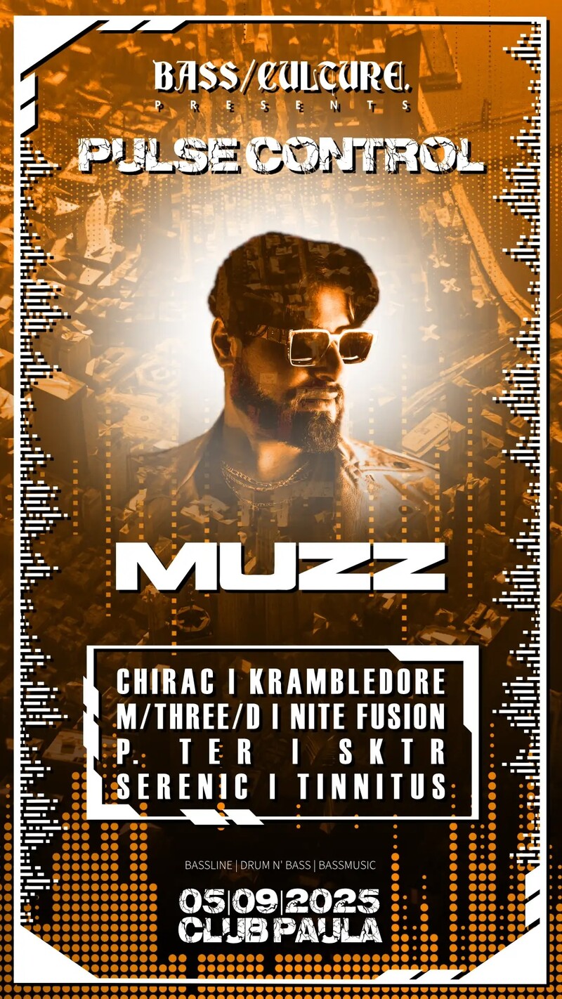 On September 5th, 2025, Club Paula becomes the center of a powerful sound experience – BASS/CULTURE presents: PULSE CONTROL, with special guest MUZZ (UK).