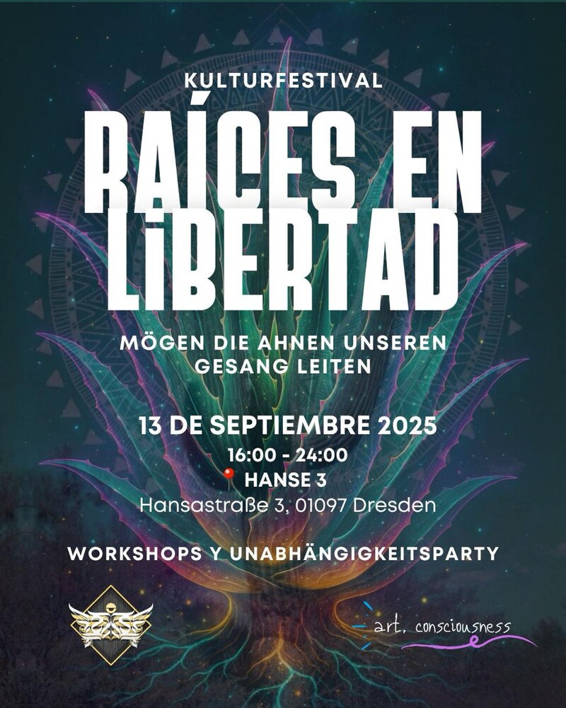 Am 13. September treffen wir uns in Dresden, um die Unabhängigkeit lateinamerikanischer Länder auf eine andere Art zu feiern: nicht nur mit einer Party, sondern mit Kunst, Erinnerung und Gemeinschaft. Im Laufe des Tages laden wir dich ein, dich mit deinen Wurzeln zu verbinden durch: