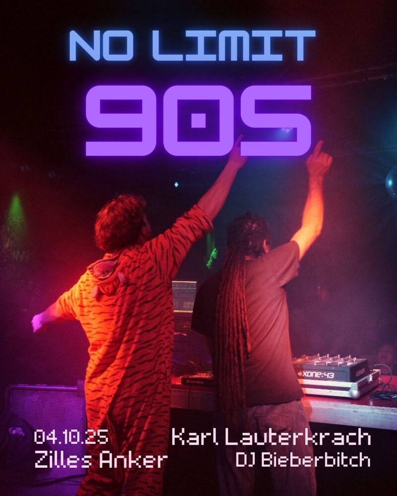 No Limit 90s - die neue Partyreihe in Zilles Anker. Am 4.Oktober bringen Karl Lauterkrach und DJ Bieberbitch den Anker zum tanzen. Kommt vorbei und tanzt mit.