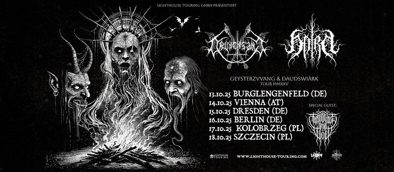 Dem Underground des deutschen Black Metal sind beide Bands längst entwachsen: Mit Drudensang und Horn gehen zwei Schwergewichte der hiesigen Szene gemeinsam auf Tour und zelebrieren ihre Neuwerke mit einer Co-Headline Tour. Mit dabei sind Three Eyes of the Void aus der Ukraine und Polen, die als Special Guest die Konzerte eröffnen.