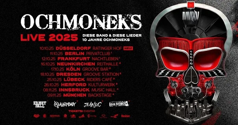 Neues von den Düsseldorfer OCHMONEKS: Zweieinhalb Jahre nach der Veröffentlichung ihres dritten Studio-Albums "GEGENWIND" kündigt sich mit "UNBESIEGBAR" der erste Vorläufer des für 2024 angekündigten vierten Studioalbums an. Gleichzeitig announcen die Düsseldorfer die gleichnamige Deutschland Tour.