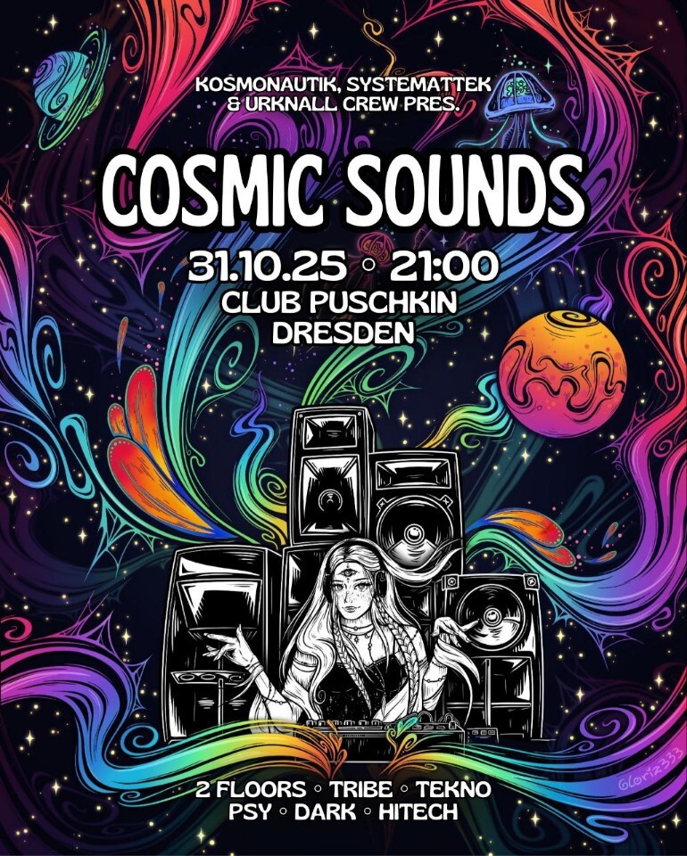 Erlebe, wie sich Galaxien aus Tribe und Tekno sowie Psy, Dark und Hitech zu einem ultimativen Kosmos verbinden – und dich zwischen Raum und Zeit treiben lassen. Neben den Kosmonautik und Systemattek Soundsystemen und den Urknall-Goanauten übernehmen zwei internationale Live-Acts die Navigation in dieser sternenklaren Nacht.