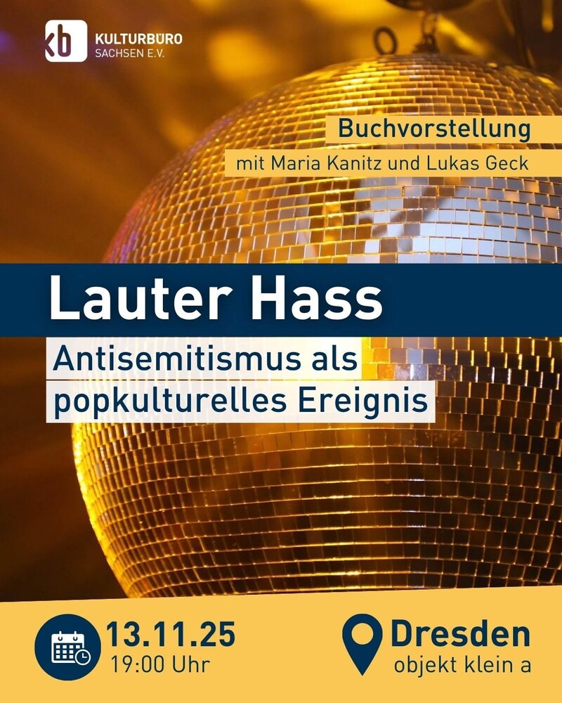 “Lauter Hass – Antisemitismus als popkulturelles Ereignis” mit den Autor:innen des Buches Maria Kanitz und Lukas Geck