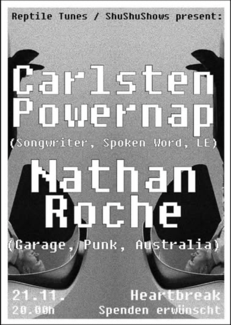 Wir begrüßen am 21.11 Nathan Roche und Carlsten Powernap im Heartbreak und freuen uns auf dieses Doppel!