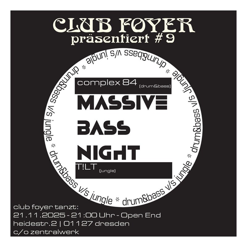 Am Freitag, 21.11.25 brennt die Hütte! Der Club Foyer bringt Pieschen zum Beben! Wir reißen ab, wir schwitzen und tanzen – zu Bässen, wilden Beats und Breaks. Ist es Drum & Bass oder schon Jungle? Anyway, es wird fett. Es wird deep. Es wird wild. Extase! We love it!!!