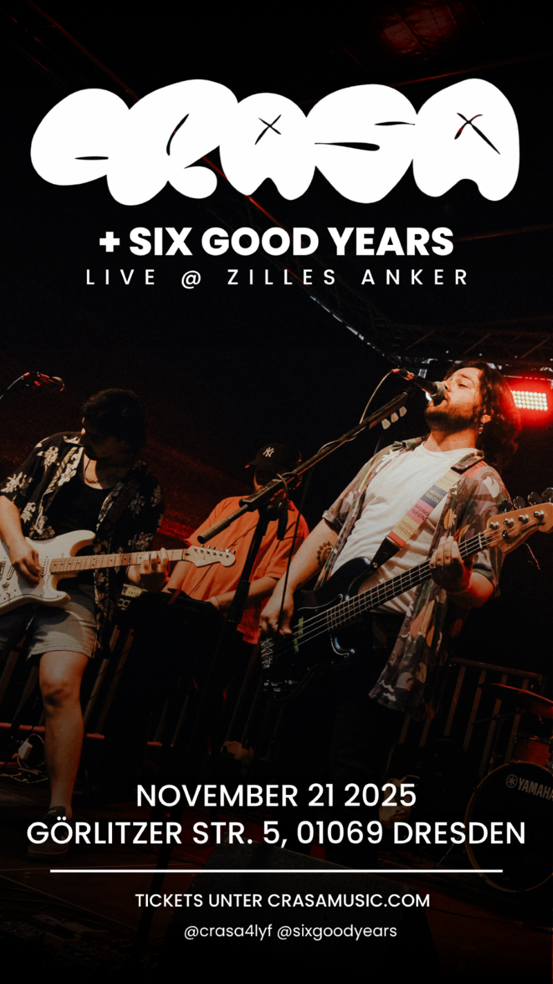 Crasa und Six Good Years bringen einen Abend voller Energie, Emotion und Bewegung auf die Bühne: laut, roh und lebendig