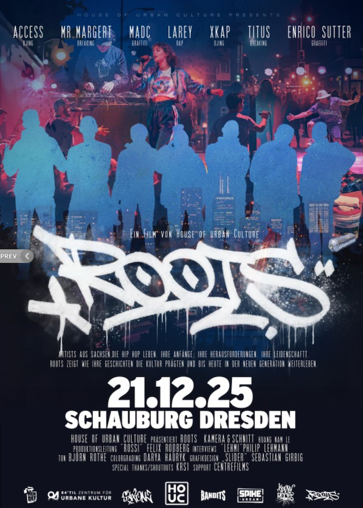 ROOTS porträtiert Menschen, die HipHop geprägt haben und bis heute von dieser Kultur getragen werden. Der Film blickt zurück auf ihre Anfänge und zeigt, was von den prägenden Momenten geblieben ist. Er macht sichtbar, wie sich HipHop gewandelt hat und wie die Protagonisten ihren Platz darin stetig neu definieren.