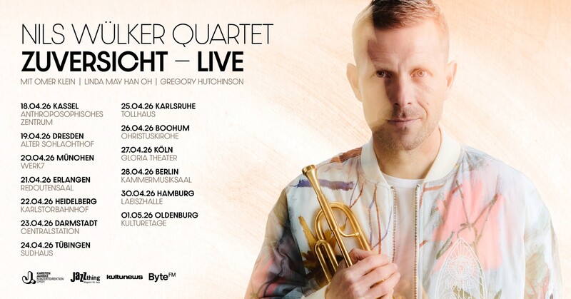Mit seinem neuen Album „Zuversicht“ präsentiert Nils Wülker als einer der erfolgreichesten Jazz-Trompeter Europas nicht nur sein vierzehntes Studioalbum, sondern auch ein eindrucksvolles Statement künstlerischer Haltung. Zum ersten Mal trägt ein Werk des ECHO-Preisträgers einen deutschen Titel – und dieser ist programmatisch: „Zuversicht“ meint hier eine aktiv gelebte Hoffnung, die selbst widrigsten Umständen mit Vertrauen in die Zukunft begegnet. Diese inspirierende Energie prägt das gesamte Album – und nun auch die dazugehörige Tournee.