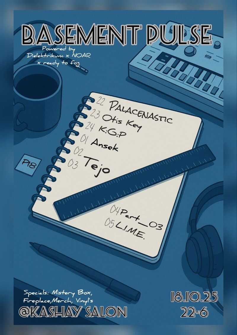 Von 22–6 Uhr an den Decks: Palacenastic, Otis Key, K:G:P, Ansek, Tejo, Part_03 & L.I.M.E. Gefeiert wird am 18.10.2025 im wunderschönen Kashay Salon Dresden.
