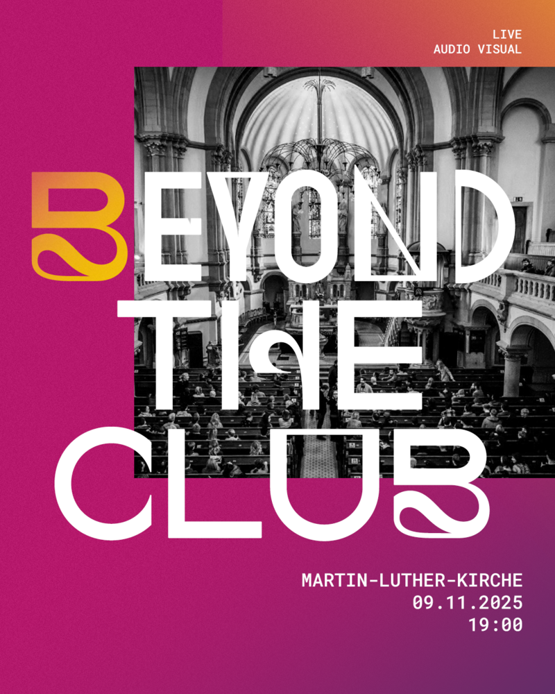 Das Prunkstück des DAVE Festivals darf auch in diesem Jahr nicht fehlen: Beyond the Club bringt elektronische Klangwelten und visuelle Kunst in einen Ort, der auf den ersten Blick fern der Clubkultur liegt – die Martin-Luther-Kirche in der Dresdner Neustadt. Am 09. November 2025 verwandelt sich der Kirchenraum in eine Bühne für ein intensives audiovisuelles Erlebnis, das Architektur, Live Musik und Bildkunst miteinander verschmelzen lässt.