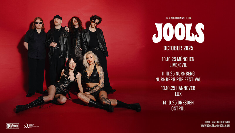Jools verkörpert eine anziehende Dualität: erst heftig und kraftvoll, kathartisch und konfrontativ und im nächsten Moment jubelnd und beschwingt, lädt sich die Musik mit Spannung auf. Die Welt von Jools ist ein Raum, in dem diese Idee von Individualität gedeihen kann. Jools ist Freiheit, ein ungefilterter Ausdruck – sei es ein Schlag ins Gesicht oder ein Kuss auf die Wange, Jools ist immer für Überraschungen zu haben. Unter diesem Mantra veröffentlicht die Gruppe im Juni ihr lang erwartetes Debütalbum „Violent Delights“. Im Frühling und Herbst 2025 ist Jools auf Deutschland-Tour.